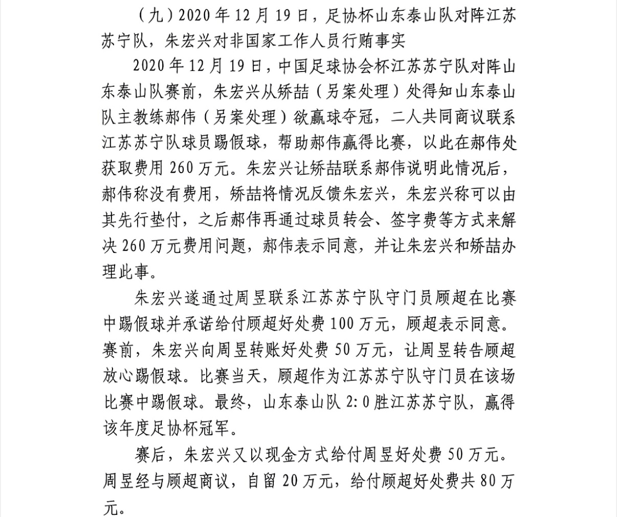 網(wǎng)傳判決書(shū):20年足協(xié)杯決賽泰山vs江蘇存在假球,顧超收80萬(wàn)放水