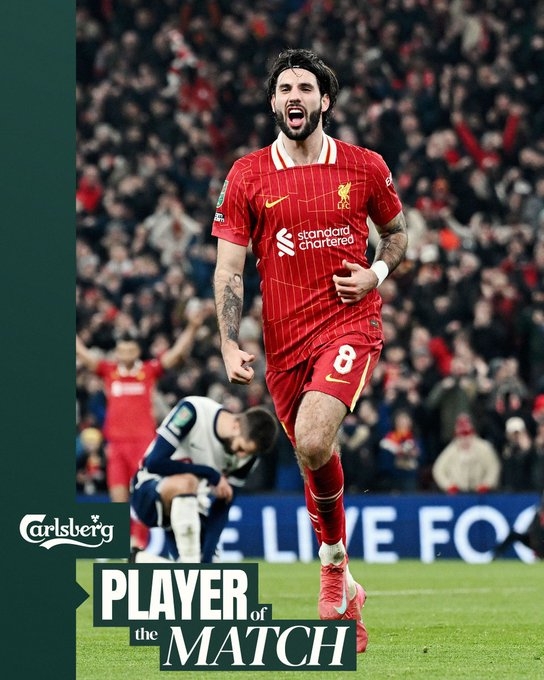 利物浦官方社媒曬出為索博斯洛伊制作的海報(bào),宣布他當(dāng)選本場(chǎng)比賽利物浦隊(duì)內(nèi)最佳球員。