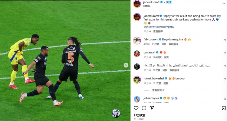 聯(lián)賽首秀雙響!杜蘭社媒曬照:很高興為這家偉大俱樂(lè)部打進(jìn)處子球