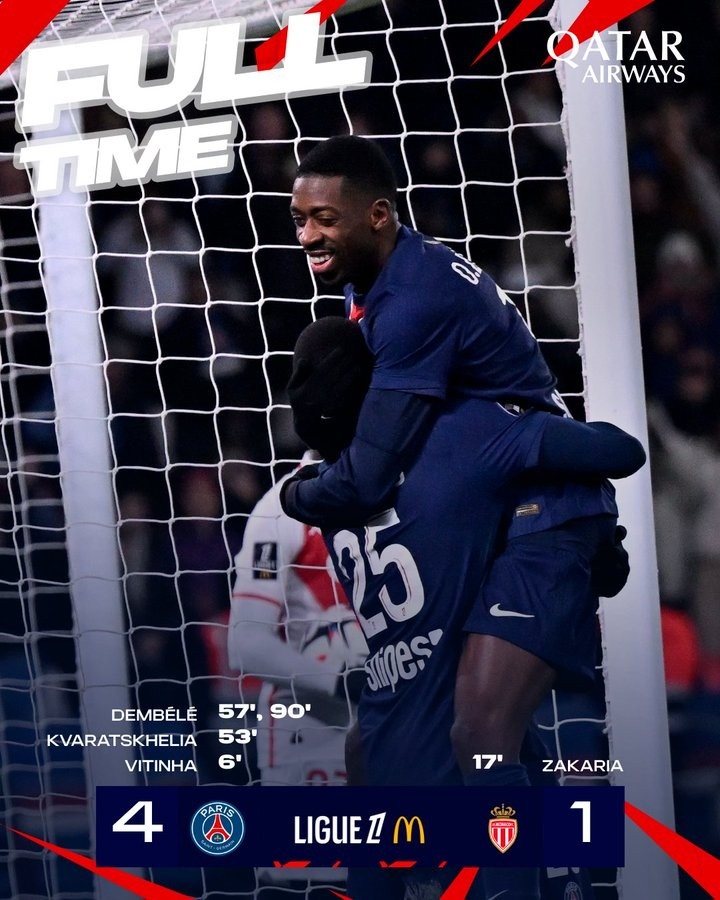 2月8日訊 巴黎在本輪法甲4-1擊敗摩納哥,21輪聯(lián)賽過后以53分領(lǐng)跑。