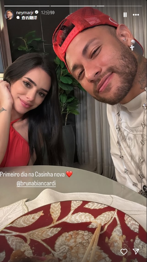 內(nèi)馬爾社媒曬與女友布魯娜合照:入住新家的第一天