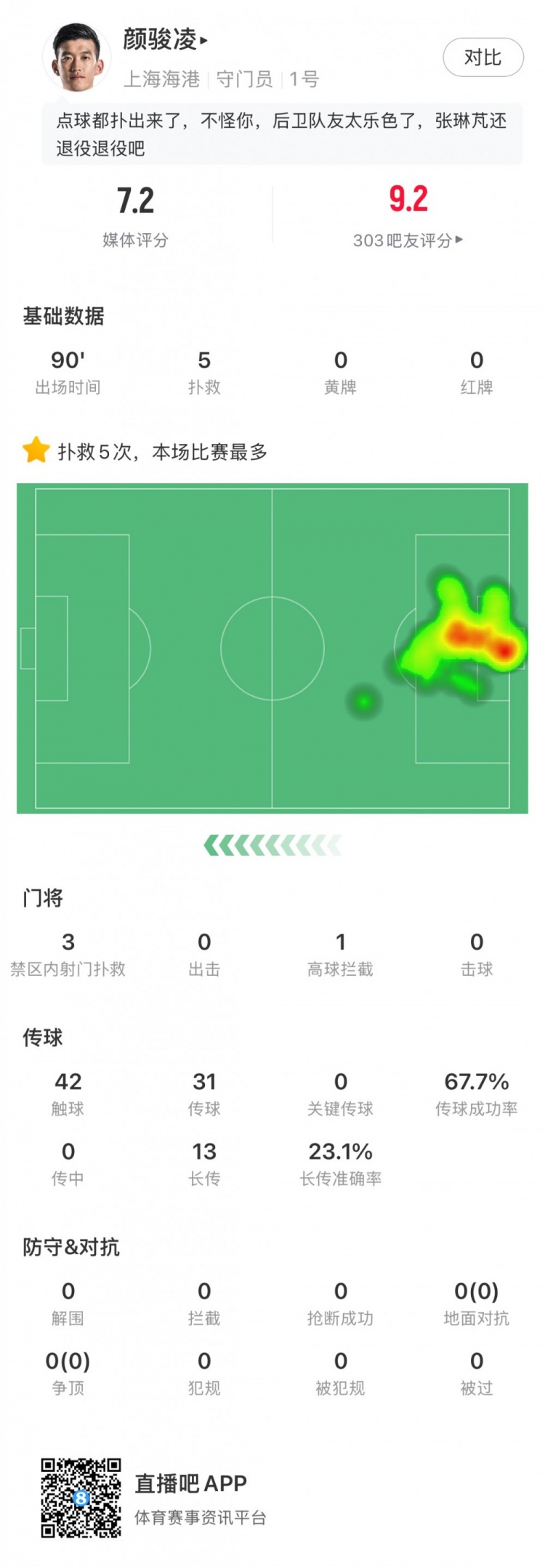 撲救5次,其中禁區(qū)內(nèi)射門撲救3次,高球攔截1次