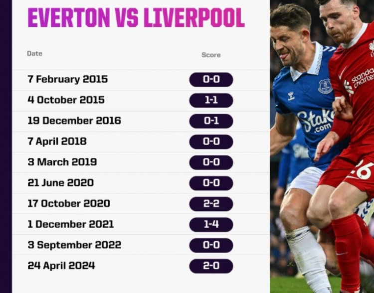 值得一提的是,近10次在古迪遜公園球場(chǎng)進(jìn)行的默西塞德德比,兩隊(duì)有5場(chǎng)都是互交白卷。