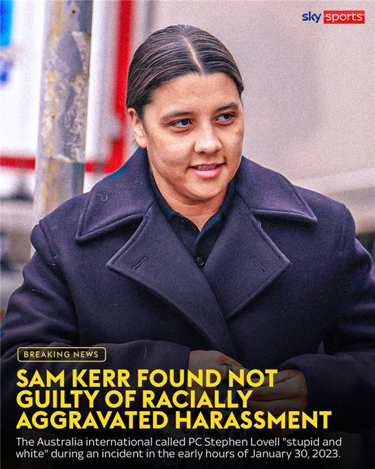 這位澳大利亞女足國腳于2023年1月30日凌晨在倫敦西南部與倫敦警察廳警官斯蒂芬-洛弗爾發(fā)生沖突時,稱對方為"愚蠢的白人"。當(dāng)?shù)鼗始曳ㄔ号銓張F(tuán)在當(dāng)?shù)貢r間周二經(jīng)過4小時17分鐘審議后,作出無罪判決。