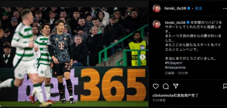 賽后伊藤洋輝在社媒發(fā)文,他寫道:“感謝這半年間幫助我進(jìn)行康復(fù)的各位。自己小時候的又一個夢想實現(xiàn)了,這是自己拜仁生涯的新的開始。真的,非常感謝各位的幫助與支持。”
