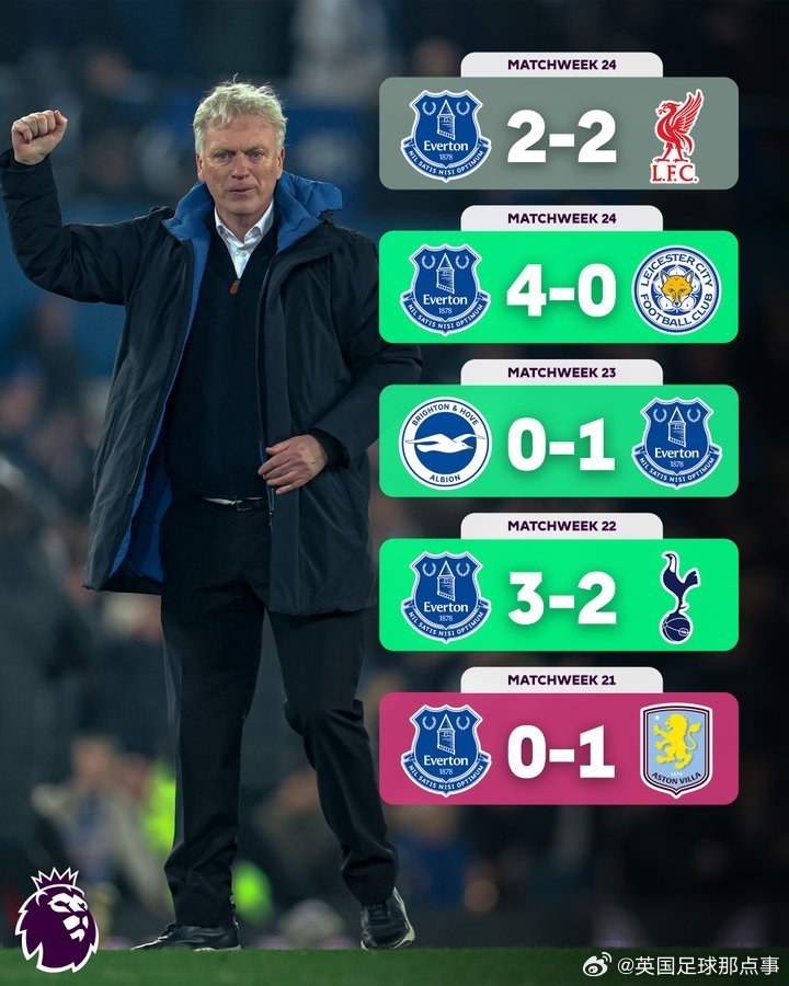 莫耶斯第二次執(zhí)教埃弗頓后的戰(zhàn)績(jī):三勝一負(fù)一平,斬?zé)岽唐郊t軍