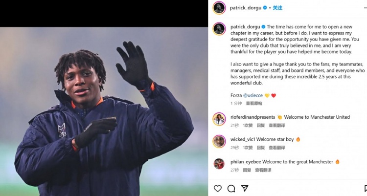 “我還要向球迷、隊友、教練、醫(yī)療組、董事會以及在這2年半時間內(nèi)支持過我的所有人,表達衷心的感謝。@萊切俱樂部,加油!”