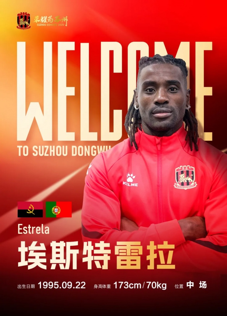 經(jīng)友好協(xié)商并達(dá)成一致,球員埃斯特雷拉正式加盟蘇州東吳足球俱樂部,為蘇州東吳出戰(zhàn)新賽季各項賽事。