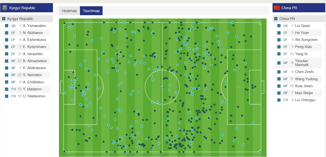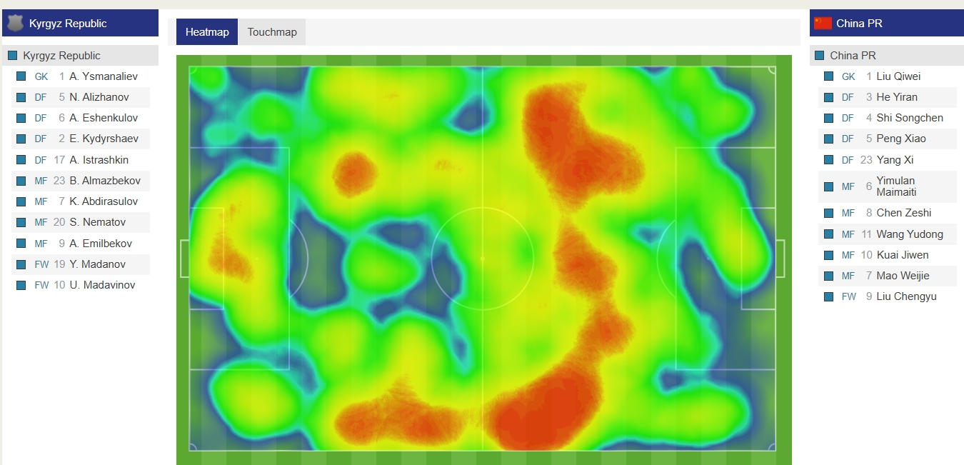 國(guó)青(深藍(lán))半場(chǎng)12次攻入對(duì)手禁區(qū),吉爾吉斯斯坦在國(guó)青禁區(qū)內(nèi)僅3次觸球 標(biāo)簽: 足球 國(guó)家隊(duì) 中超 中國(guó)足球