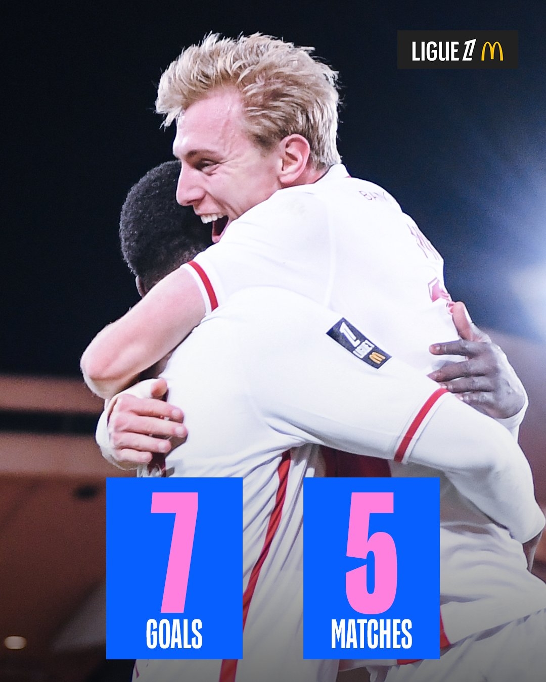 數(shù)據(jù)統(tǒng)計顯示,比雷斯在法甲生涯前5場比賽打進7球,法甲歷史此前僅有2012年的伊布(巴黎)做到。