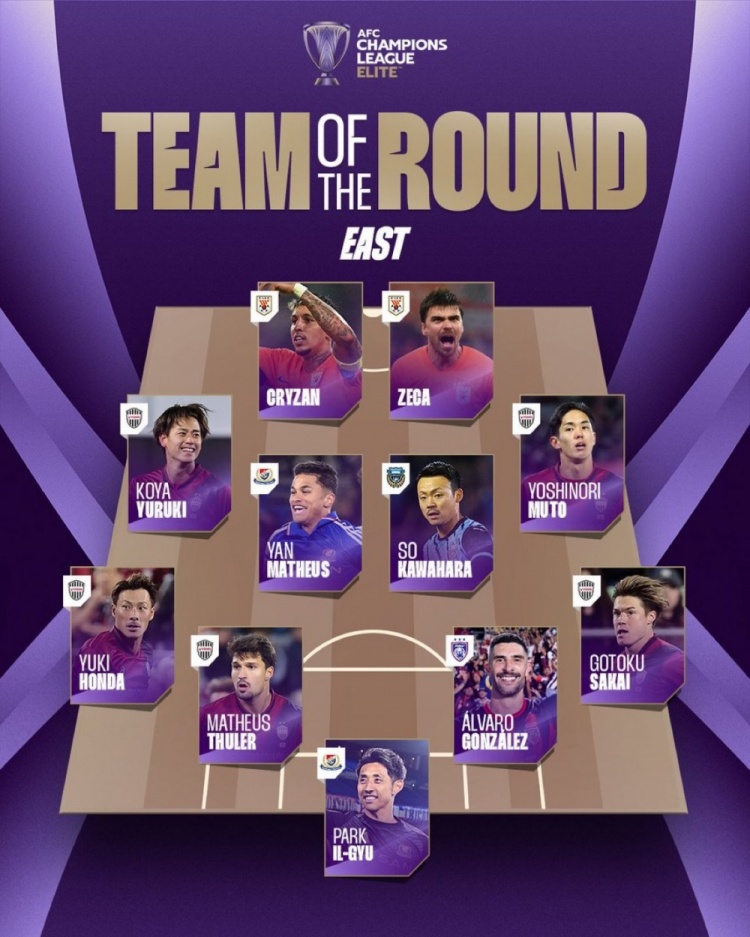 亞冠精英聯(lián)賽東亞區(qū)第7輪最佳陣容:克雷桑、澤卡搭檔鋒線